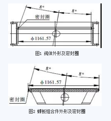 三偏心金屬硬密封蝶閥的密封面是斜錐面,閥體密封圈(圖1)與蝶板組合件密封圈(圖2)的接觸為面接觸,其工作原理是靠驅(qū)動裝置扭力直接帶動蝶板組合件,使蝶板組合件密封圈與閥體密封圈充分接觸后產(chǎn)生彈性變形而密封。三偏心金屬硬密封蝶閥作為一種高性能閥門,具有耐腐蝕性好、密封可靠、開啟力矩小等優(yōu)點(diǎn)。三偏心硬密封電動蝶閥DN1200,其中閥體密封圈材料為1Cr18Ni9Ti,蝶板組合件密封圈材料為復(fù)合的不銹鋼板與石棉板夾層組合件,閥體密封圈與蝶板組合件密封圈的加工質(zhì)量直接決定蝶閥密封性能。